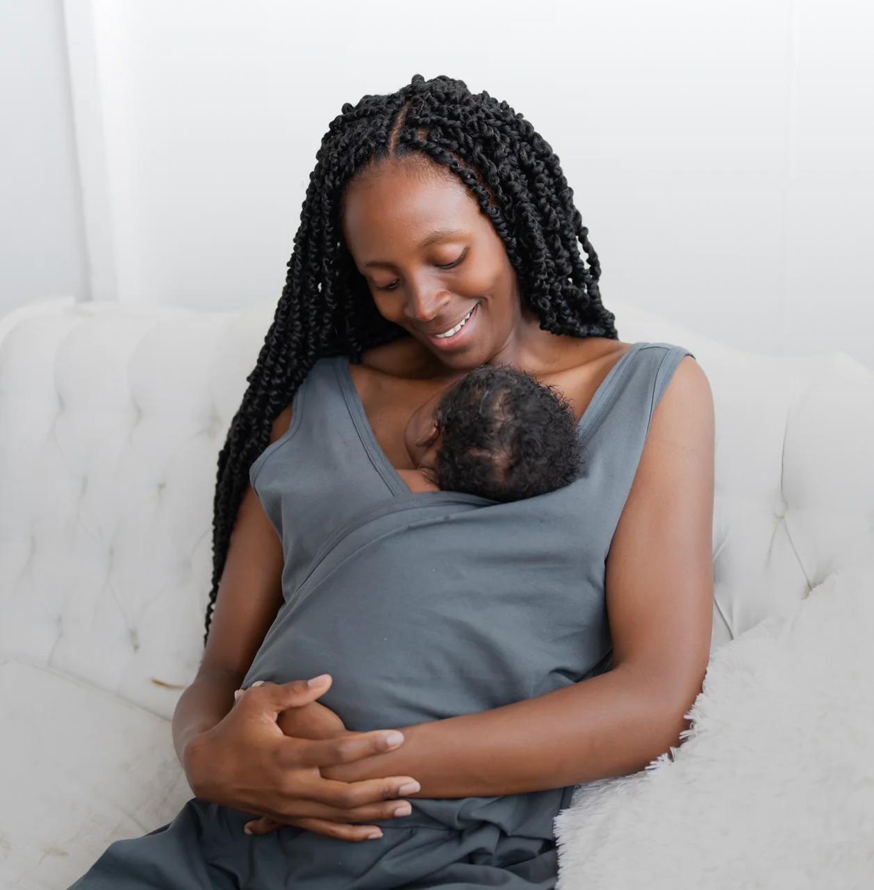 While trying to hold my son against me in a flimsy hospital gown, I realized just how precarious it all felt. That’s what sparked the idea for Skin to Skin Gowns: the desire to give mothers a gown that supports safe, uninterrupted closeness to their baby.