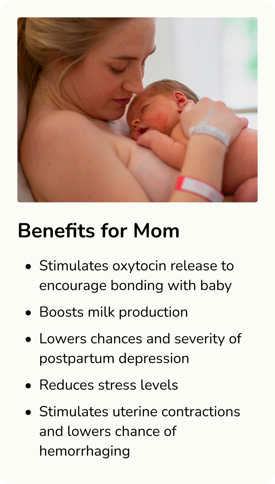 So many new mothers underestimate how depleted they are from labor, medication, interrupted sleep, and the physical reality of major surgery or recovery. Even with the best intentions, you can be more compromised than you realize. And those conditions can interfere with the earliest skin-to-skin moments, which are some of the most important for bonding, calming your baby, and supporting breastfeeding.